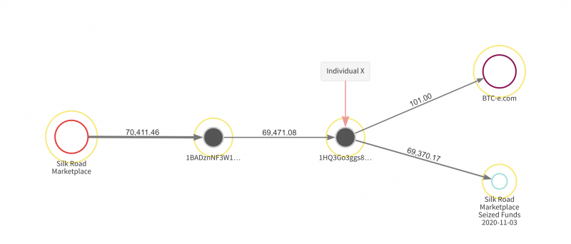 Прибегнув к помощи специалистов из компании Chainalysis, правоохранительные органы обнаружили, что еще в 2013 году были совершены 54 транзакции на общую сумму 70 411,46 биткоинов, которые были отправлены на два адреса. Так как эти транзакции не фигурировали в собственной базе данных Silk Road, предполагалось, что средства были кем-то украдены.