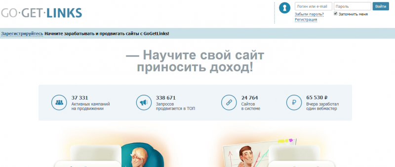 - Gogetlinks. Самая большая и популярная биржа, продающая только вечные ссылки. Это ссылочная масса, которая продается навсегда, т. е. веб-мастер ставит линк на свой сайт или другой онлайн-ресурс на все время его существования. Биржа Gogetlinks отличается простотой и понятностью поиска подходящих ресурсов, страхованием ссылок на 1 год, расширенным функционалом для оптимизаторов. Добавить свой сайт для продажи на нем ссылок может не каждый: ресурсы проходят строгую модерацию. Выплата вознаграждения веб-мастерам осуществляется на Яндекс.Деньги, WebMoney после истечения 3 месяцев после размещения линка.