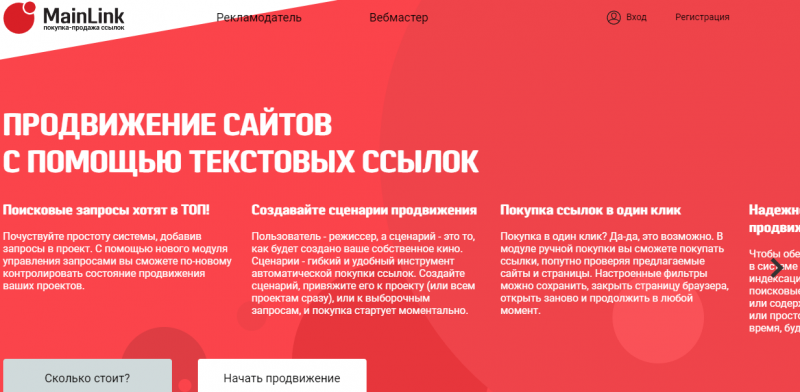 - MainLink. Хороший ресурс с широкими возможностями для оптимизаторов и налаженной обратной связью от технической поддержки. На бирже можно купить разные виды ссылок, вечные объявления, статьи. Нет высоких требований по уровню вложенности страниц или к индексу цитирования ресурса.