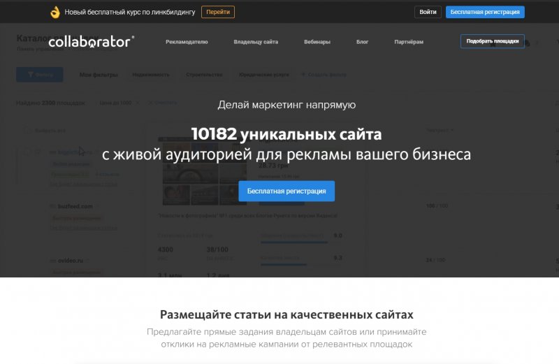 - Collaborator. Биржа для продажи статей, которые можно далее разместить на качественных онлайн-ресурсах нужной тематики. Модерацию этой площадки проходят только сайты, которые имеют подтвержденный трафик (показатель оценивается по аналитическим сервисам поисковых систем). Ставит невысокую комиссию за услуги (10 %). Оптимизаторы хвалят ресурс за хорошую скорость выполнения задач, удобные способы пополнения и вывода средств с площадки.