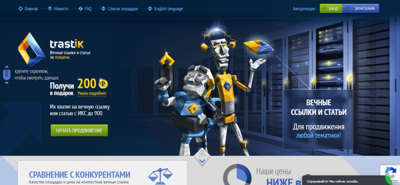 - Trastik. Биржа, где можно купить или продать вечные статьи и вечные ссылки. Предлагается размещение на иностранных онлайн-ресурсах. Нет запретов на некоторые виды тематик, которые ограничены на других площадках (азартные игры, 18+ и пр.). Есть страховка на 1 год для вечных ссылок, в которую входит гарантия от снятия линка, снижение качества онлайн-площадки, размещение рядом других ссылок, прекращение индексирования страницы и пр. Выплаты веб-мастерам – Яндекс.Деньги.
