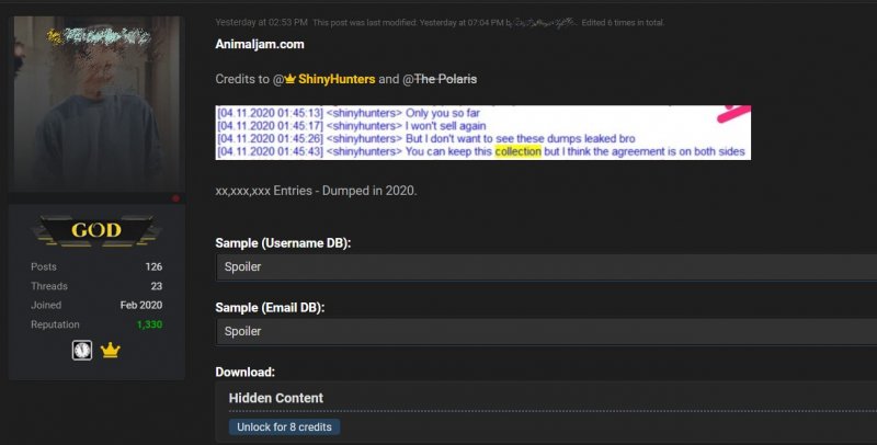 В даркнете уже опубликованы две базы данных (game_accounts и users), содержащие информацию примерно о 46 000 000 пользователей. Утверждается, что эти БД были получены известной хак-группой ShinyHunters, которая в прошлом не раз брала на себя ответственность за крупные утечки данных (1, 2).