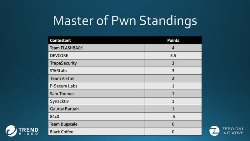На Pwn2Own Tokyo в этом году записались десятки команд и отдельных исследователей. Победителем соревнования стала команда Team Flashback, в которую входят настоящие ветераны Pwn2Own — Педро Рибейро (Pedro Ribeiro) и Радек Домански (Radek Domanski).