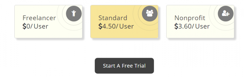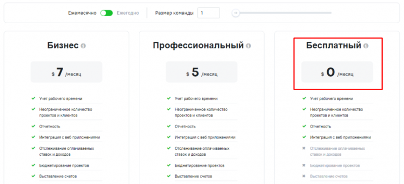 Есть бесплатный план для фрилансеров. В платных планах оплата идет за одного пользователя. Например, пакет «Standart» стоит 4,5 дол. США на 1 пользователя.