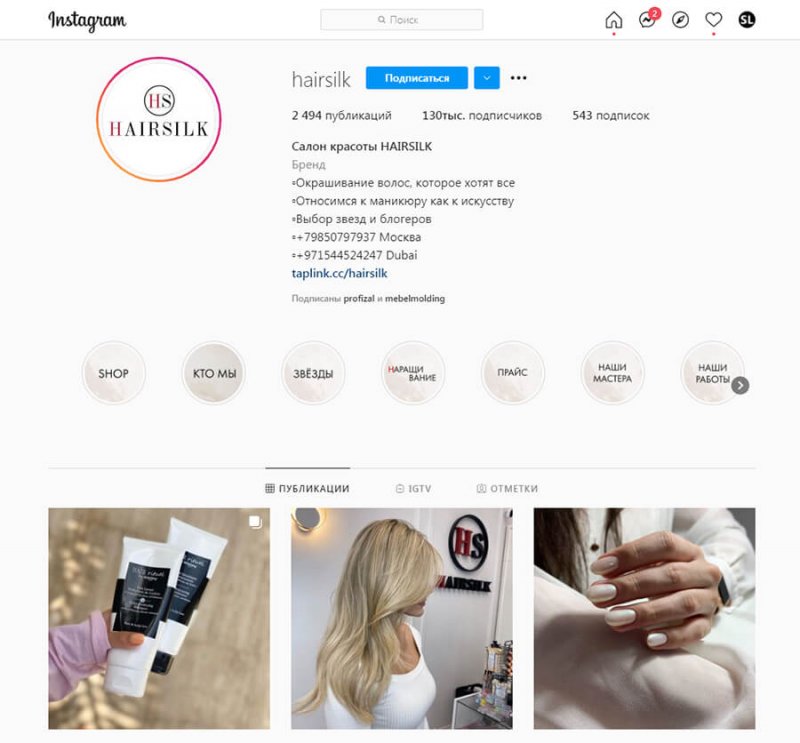 Инстаграм — идеальная площадка для рекламы салона. Можно выкладывать фотографии и видео услуг, писать привлекательные посты, делиться сторис, вести прямые эфиры и снимать видео для IGTV. Одно только ведение профиля в этой соцсети способно принести вам массу клиентов.