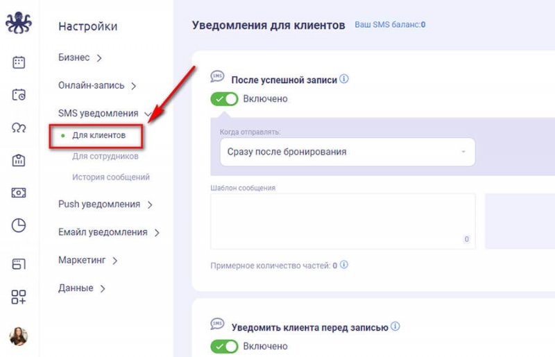 Нужно настроить не только временной промежуток отправки сообщений, но и шаблон текста в SMS.