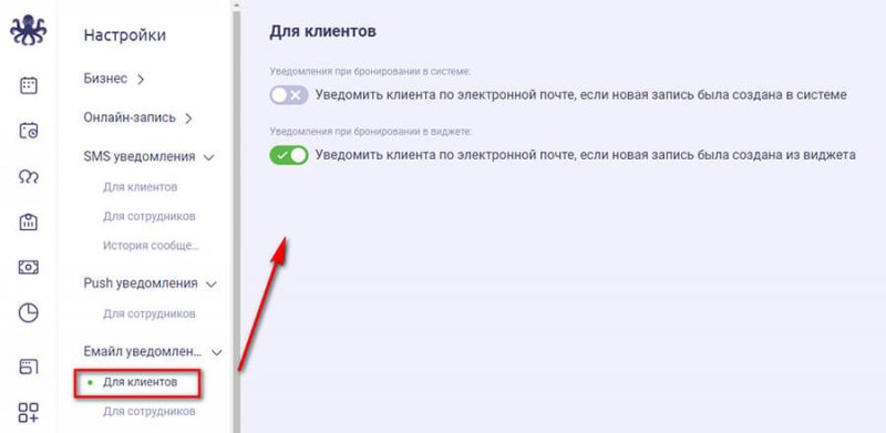 Уведомления по электронной почте также доступны для клиентов и сотрудников.