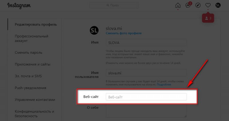 Копируем ссылку на страницу с виджетом и устанавливаем в профиле в соцсетях в поле «Веб-сайт» или «Ваш сайт» (зависит от соцсети). Вот, например, как это выглядит в Инстаграм.