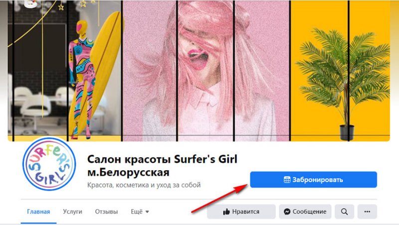 - добавьте контактные кнопки в соцсетях, куда можно вставить активную ссылку (пример — кнопка «Забронировать» в Фейсбуке);