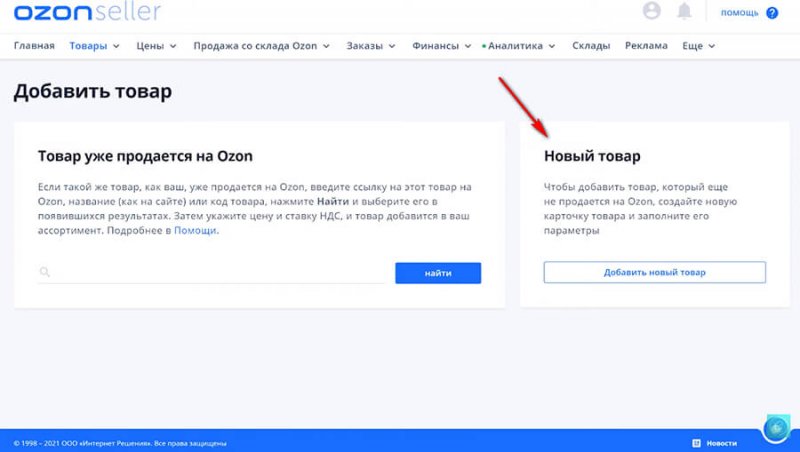 Если размещаете товар, который еще не продается на Озон, например, вещь собственного производства, нужно создавать новую карточку.