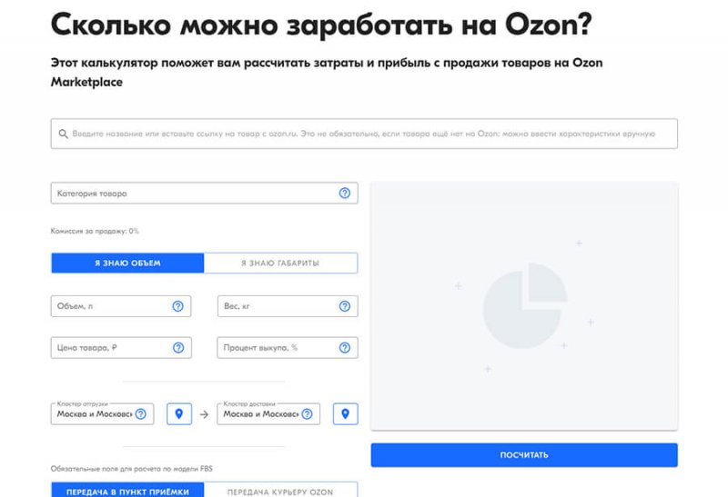 У Ozon есть калькулятор, позволяющий рассчитать заработок с учетом расходов. Находится на calculator.ozon.ru. Нужно подставить данные в форму и нажать «Посчитать».