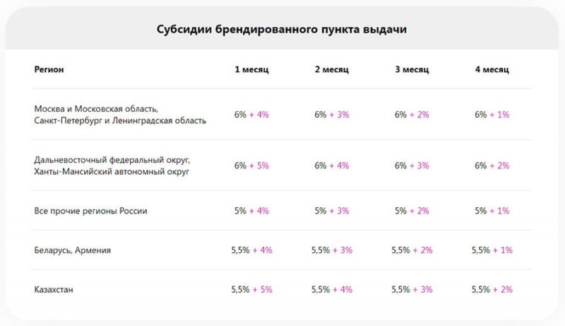 — Субсидия на открытие ПВЗ на первые 4 месяца. Субсидия выражается в повышенном проценте. У франшизных ПВЗ этот процент немного выше, чем у WB Point.