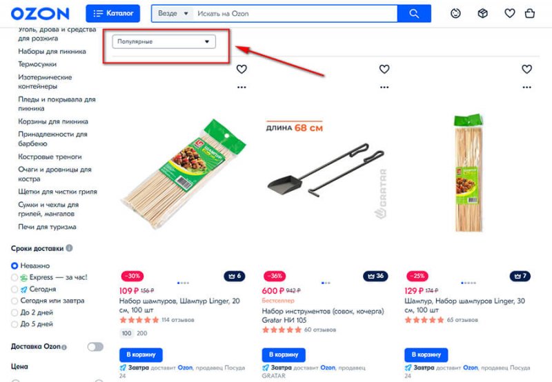 — Популярные товары. Открываем любую категорию и ее подкатегории, чтобы открылся список товаров. Например, «Дом и сад» — «Дача и сад» — «Отдых и пикник». По умолчанию товары уже отсортированы по популярности. Можно подробно изучить каждый товар, посмотреть его рейтинг и отзывы.