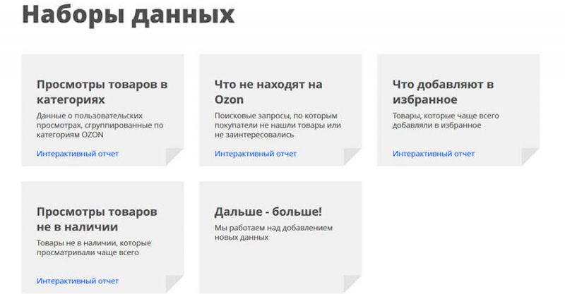 Ozon.OpenData — это открытая база, куда сам Озон добавляет данные по товарам, чтобы облегчить продавцам процесс поиска товаров и формирования цены. Например, в базе можно найти товары, которые чаще всего добавляют в избранное и другие отчеты. База доступна любому пользователю, а не только действующим продавцам на Озон.