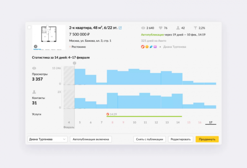 - Как работает. Это относительно новый способ продвижения на Авито. Раньше клиенту было нужно самостоятельно рассчитывать, когда и в каком месте размещенное объявление будет эффективнее. Для этого нужно было поднимать его в поисковой выдаче, показывать в VIP или премиум-блоке. Такие действия приносили дополнительные просмотры, но их количество не прогнозировалось.
