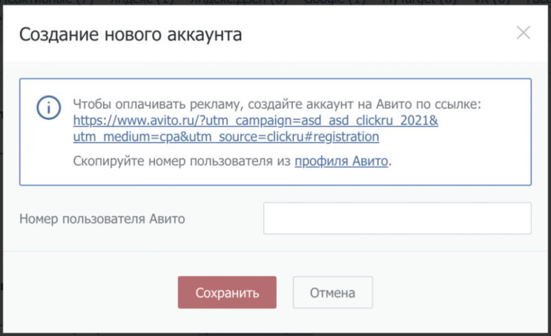 - После регистрации скопируйте номер пользователя и вставьте его в форму Click.ru.