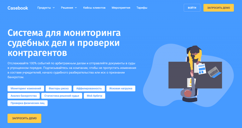 Casebook – это платный сервис для проверки организаций по номеру судебного дела и ИНН. Подходит крупным игрокам, юристам, адвокатам, финансовым компаниям, госструктурам, правовым департаментам, службам безопасности.