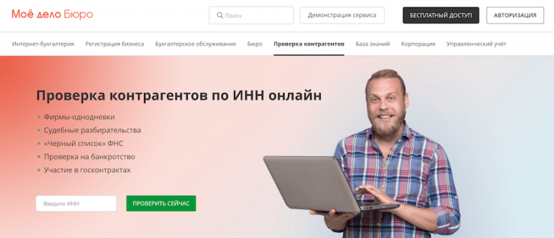 Моё дело – это система для проверки юрлиц и ИП по ИНН, ФИО руководителя, ОКПО, ОГРН, ОГРНИП и названию. Подходит ИП, начинающим предпринимателям, компаниям, работающим с контрагентами только по России. Часть информации предоставляется бесплатно, часть – платно.