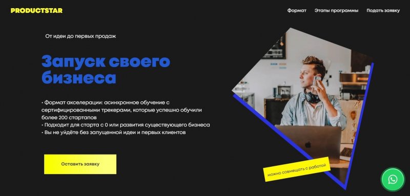 Курс «От идеи до первых продаж: запуск своего бизнеса» от ProductStar построен в формате акселерации: асинхронное обучение с сертифицированными трекерами, которые успешно обучили более 200 стартапов. Подходит для начинающих предпринимателей, продакт-менеджеров, владельцев и руководителей бизнеса.