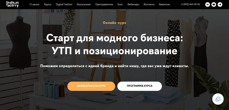 Курс «Старт для модного бизнеса: УТП и позиционирование» от Fashion Factory состоит из цикла видеолекций и практических работ, объединенных в 7 модулей. Рассчитан на начинающих бизнесменов, желающих найти прибыльную нишу и создать собственный бренд.
