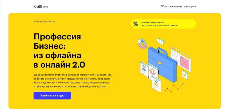 Сборник курсов «Профессия Бизнес: из офлайна в онлайн 2.0» от Skillbox содержит видеоматериалы для самостоятельного изучения, вебинары и практические задания на реальных кейсах. Обучение рассчитано на предпринимателей и руководителей малого и среднего бизнеса.