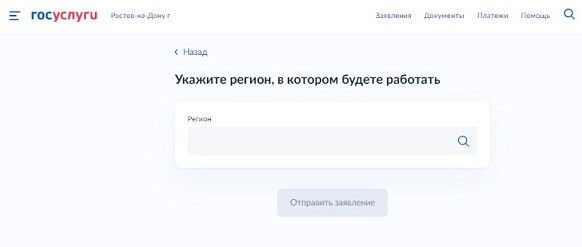 - Укажите регион ведения деятельности. Нажмите «Отправить заявление».