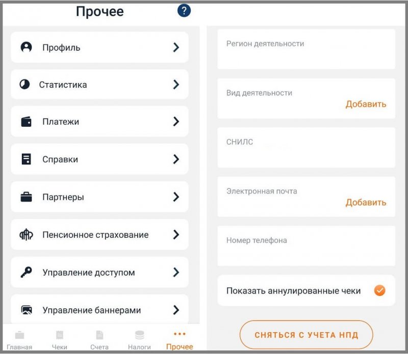 Чтобы отказаться от статуса самозанятого, бумажное заявление в налоговую подавать не нужно. На главной странице приложения «Мой налог» откройте меню «Прочее» и выберите вкладку «Профиль». Нажмите «Сняться с учета НПД». Налоговая обработает запрос и пришлет уведомление.