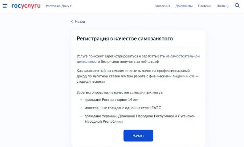 Нажмите «Начать». - Подготовьте необходимые документы.